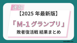 〈お笑い賞レース〉では、M-1グランプリ・キングオブコント・R-1グランプリなど主要大会のルール・放送日程・視聴方法などをわかりやすく紹介しています。