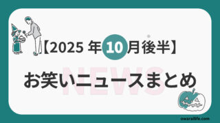 お笑いニュース 【2025年10月後半】お笑いニュースまとめ|M-1準々決勝進出者発表・NHK新人お笑い大賞など 2025年10月後半は、『DAIBAKUSHOW 2025』追加出演者発表、『THEゴールデンコンビ』第2弾決定、『M-1グランプリ』準々決勝進出者発表など話題が続出。ファイヤーサンダー・崎山の結婚やYes!アキトの活動休止など、注目トピックもまとめています。 2025.11.04 お笑いニュース月別まとめ