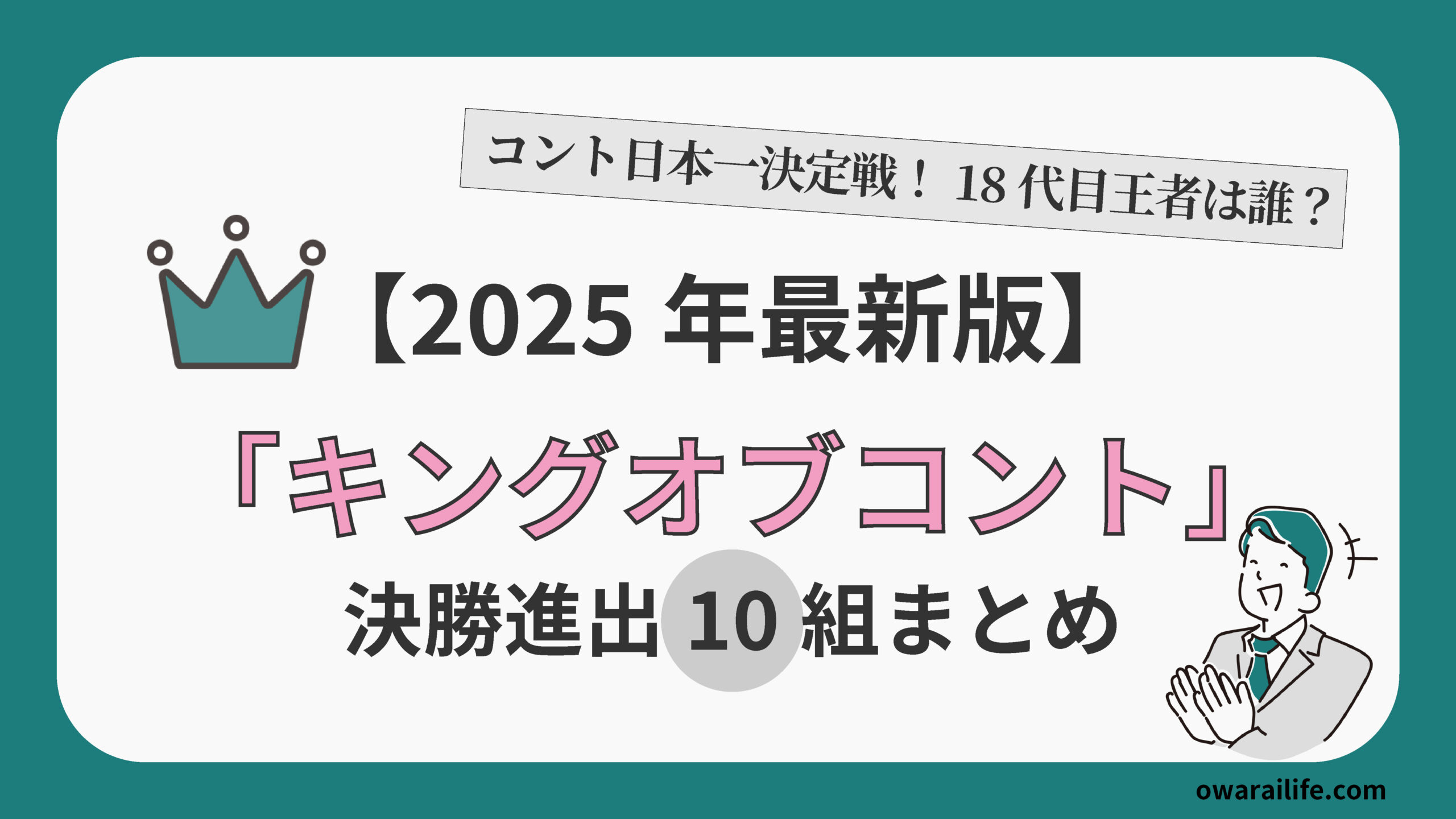 2025年のキングオブコントは、史上最多となる3,449組が挑んだ熾烈な戦いを経て、個性豊かな10組が決勝に進出しました。コント界のベテランから新鋭まで幅広い層がそろい、演技力・構成力・企画力が試される今年の大会。