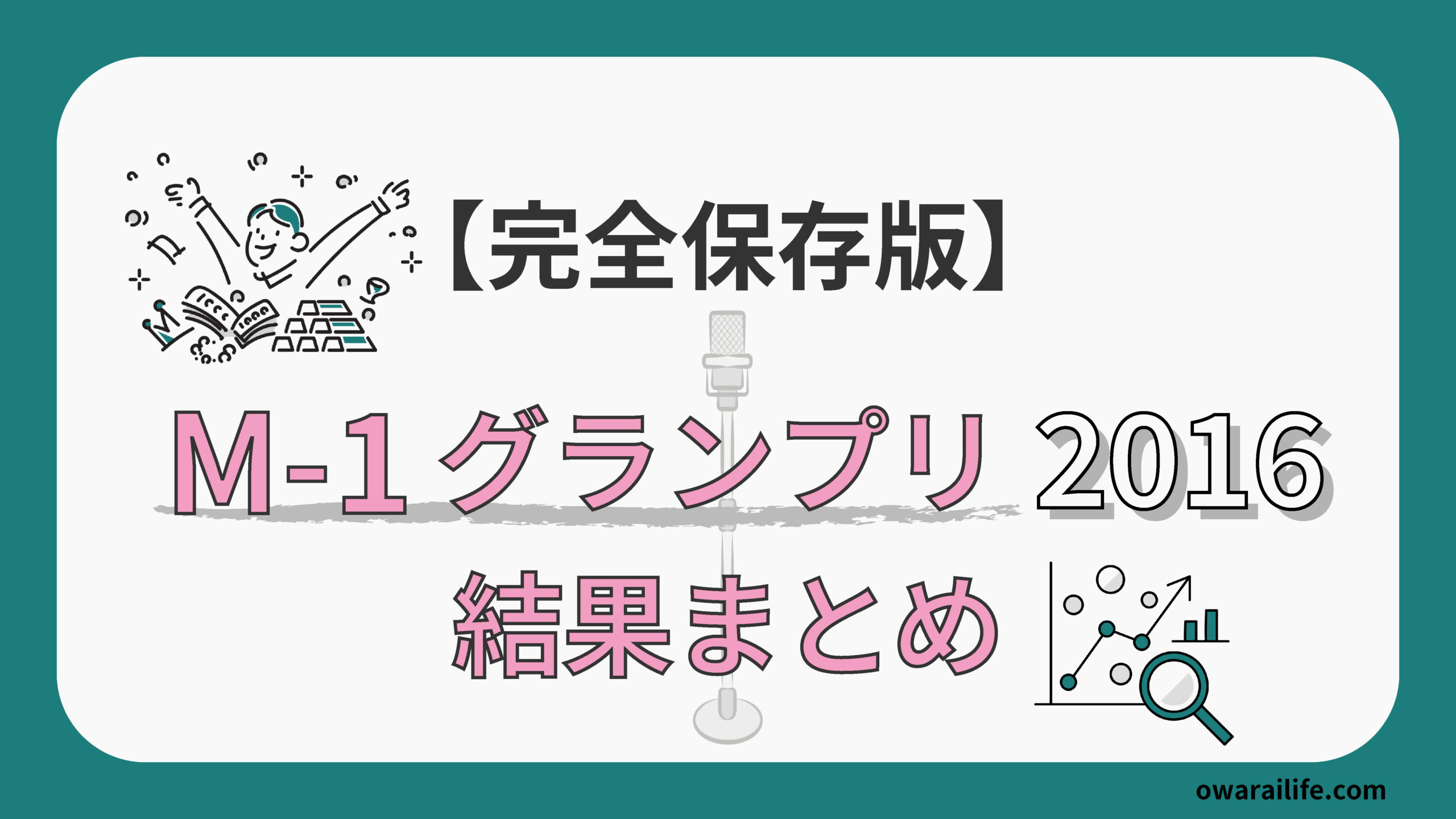 「M-1グランプリ2016」結果まとめ|順位・点数・ファイナリスト・審査員一覧【第12回】