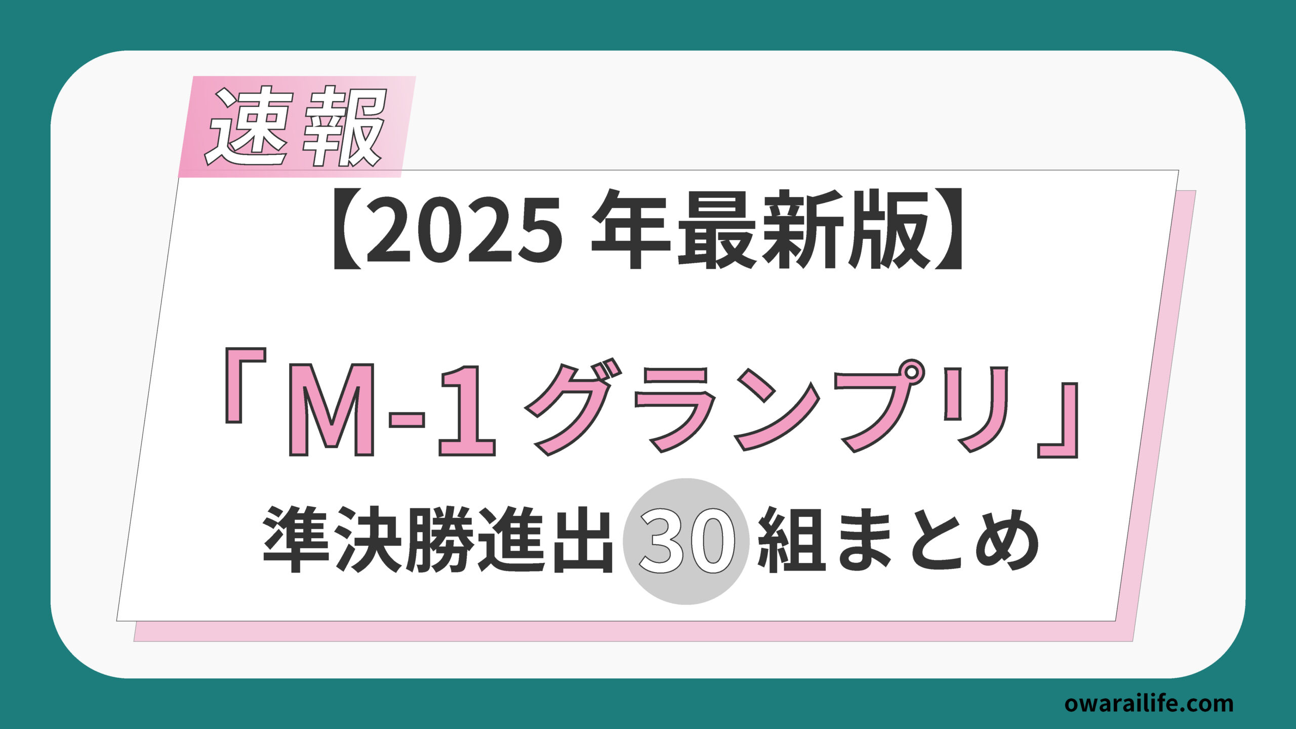 「M-1グランプリ2025」の準決勝進出者30組が発表されました。