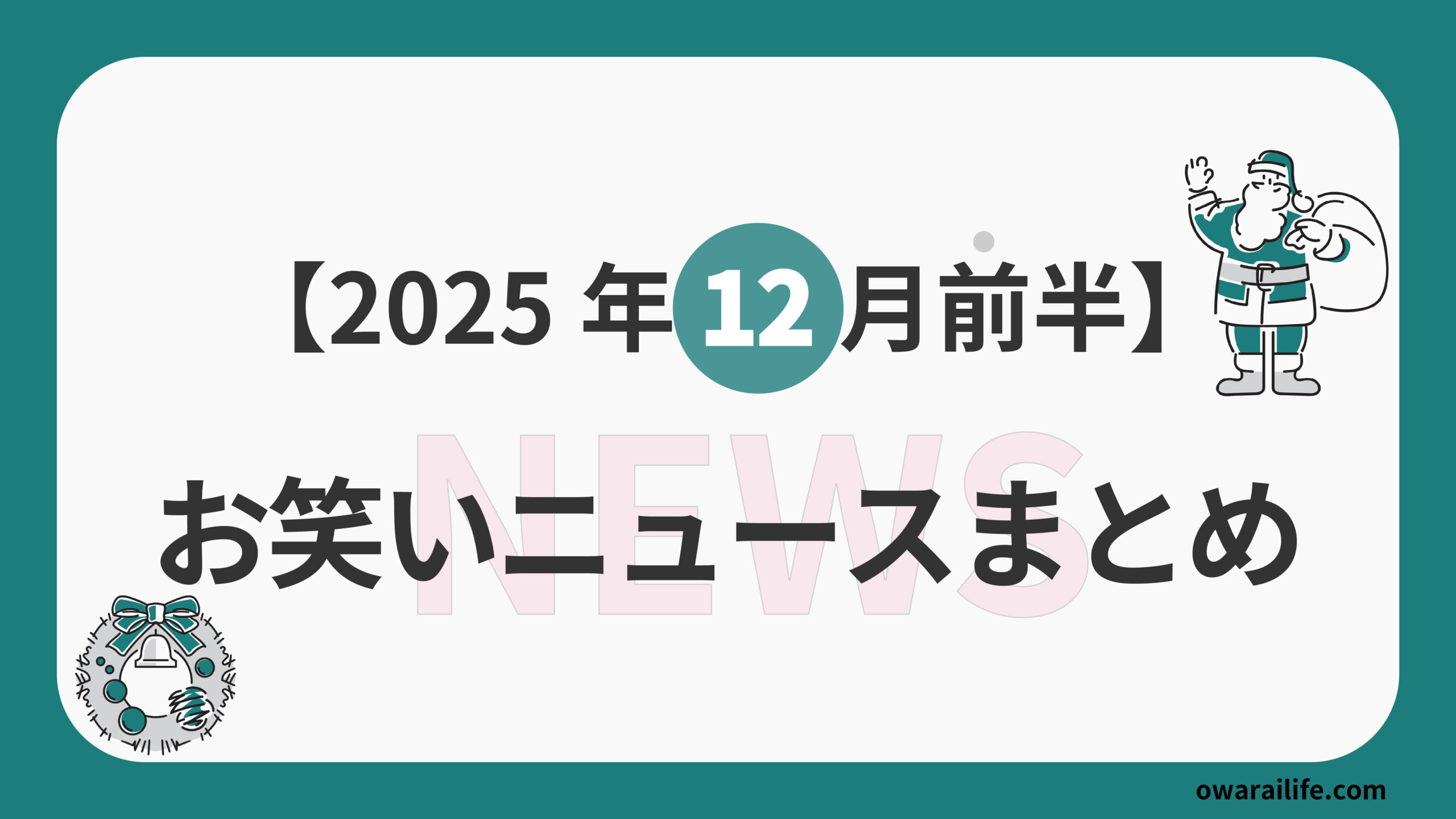 - 2025年12月前半(1日〜15日)の主なお笑いニュース一覧