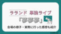 などを中心に、初めて単独ライブに参加する方にもイメージしやすいように紹介していきます。