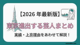 2026年4月から東京進出を発表している芸人をまとめました。カベポスター、ツートライブ、セルライトスパなど、関西で実績を積んできた注目の上京組を一覧で紹介。プロフィールや主な実績、上京の理由、共通する傾向まで整理しています。今後の追加発表も随時更新予定です。