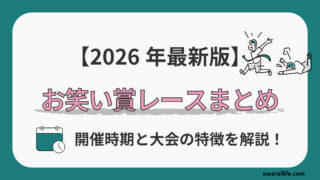 2026年に開催予定のお笑い賞レースを時系列でまとめました。M-1グランプリ、R-1グランプリ、キングオブコント、THE W、NHK新人お笑い大賞など主要大会の開催時期、出場資格、特徴を一覧で解説。年間の賞レースの流れを把握したい方におすすめの保存版まとめ記事です。